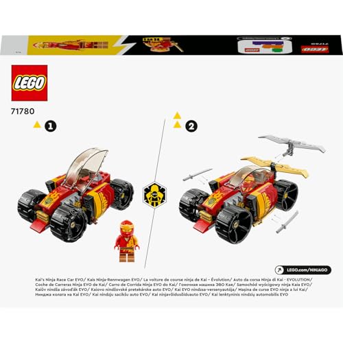 • LEGO NINJAGO oyuncak arabası – Çocuklar, Kai'nin Ninja Yarış Arabası EVO (71780) oyuncak yapım seti ile heyecan verici…