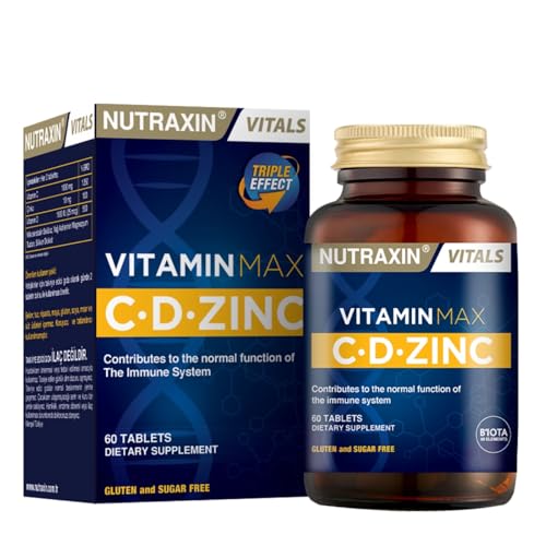 Vitamin Max C-D-Zinc Nutraxin Vitamin Max; içeriğinde bulunan C vitamini, D vitamini ve çinko ile üç güçlü bileşeni bir arada sunmaktadır. Her porsiyonu 1000 mg C vitamini, 1000 IU D vitamini ve 10 mg çinko içermektedir. “C vitamini bağışıklık sisteminin normal fonksiyonuna katkıda bulunur.”
